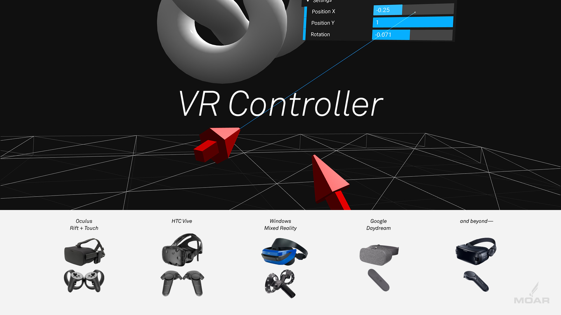 How is this one going ? This seems to work well for me with the Oculus and game controllers. I was only able to get the trigger buttons working not the top buttons or joystick controls. However is there an object model that might reflect the game controllers ? I'd like to support the vive controller as well as the GearVR remote. I was unable to get a laser pointer raycaster working on the object just the menu The model available in the demo is for the vive controller but the textures are huge. |