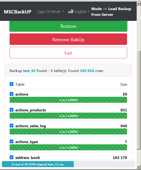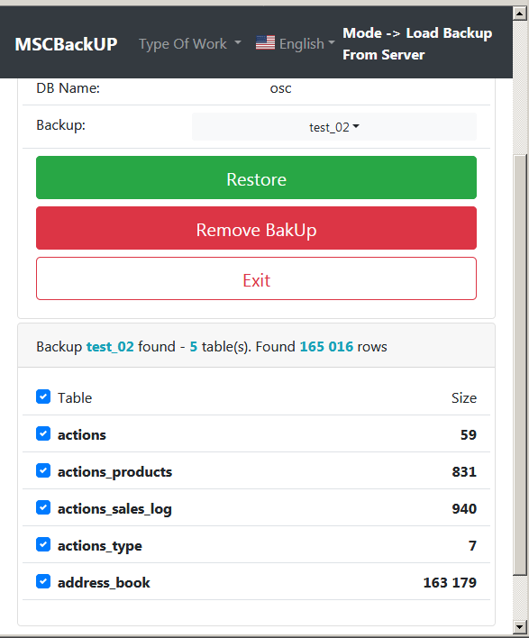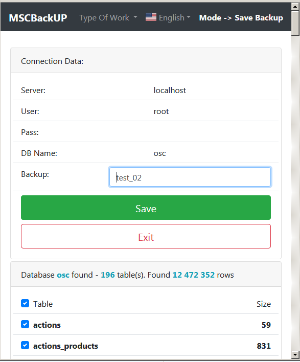 Utility for backup & restore database on many version PHP & MSQL