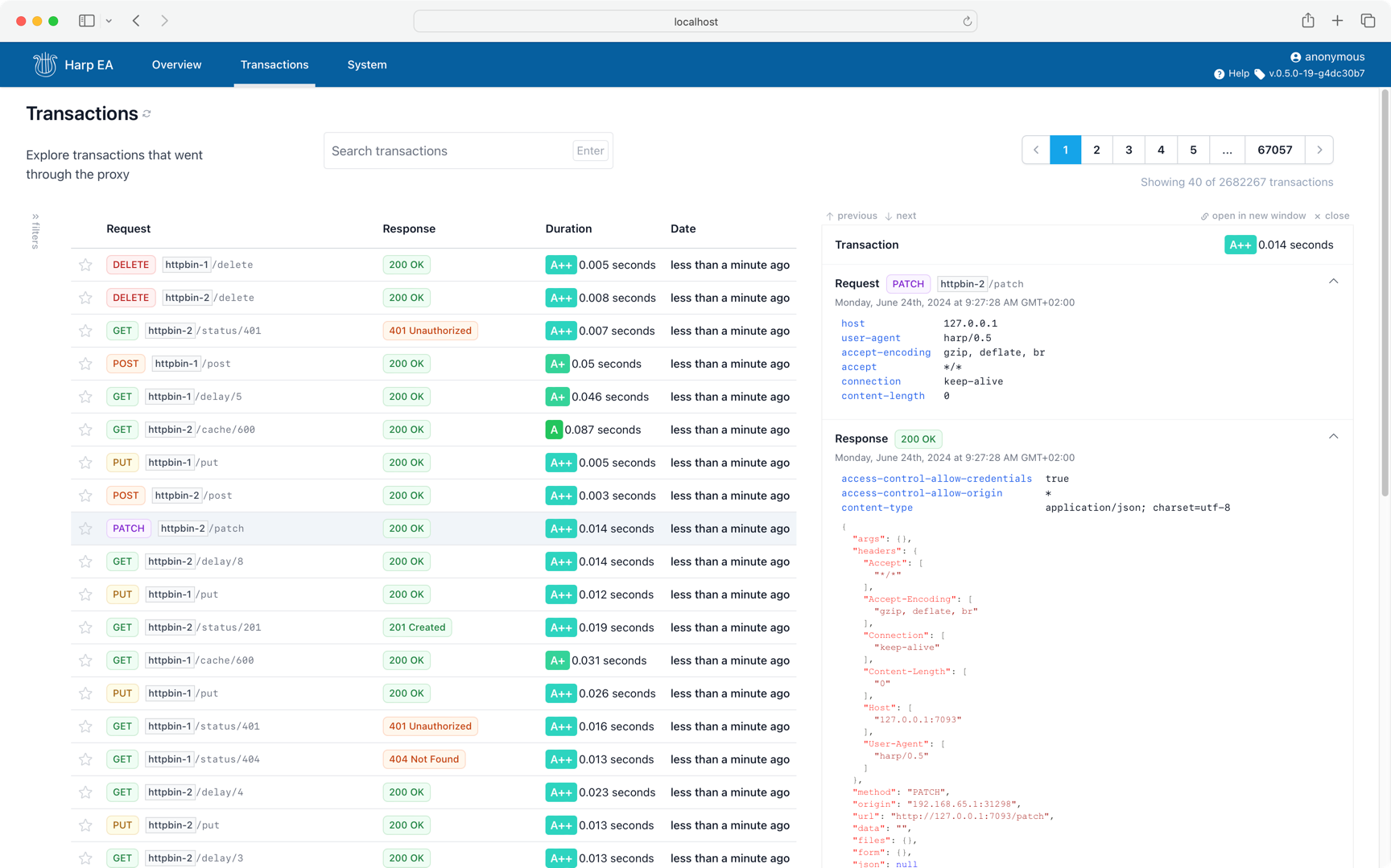 To instantly get insights on how your application is interacting with external services, you get a full searchable transactions audit trail, with detailed information on each request and response.
