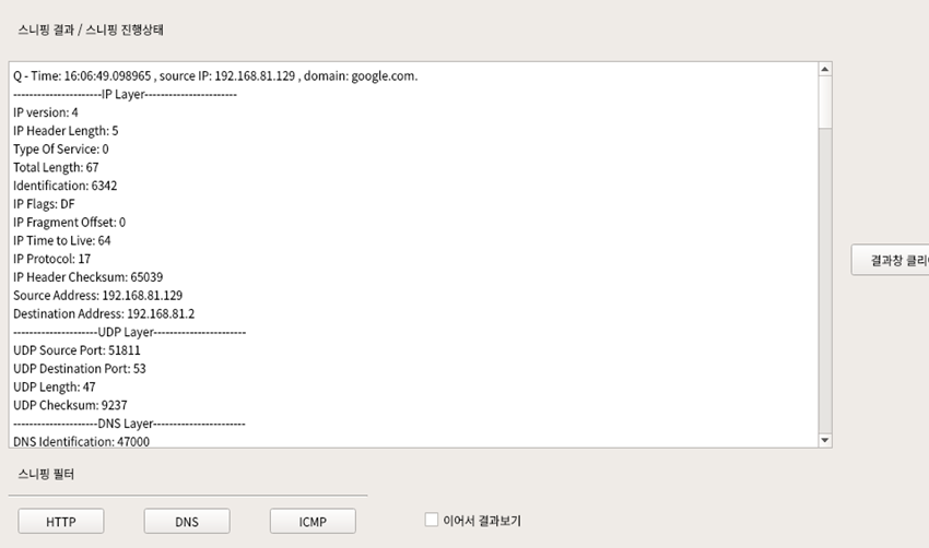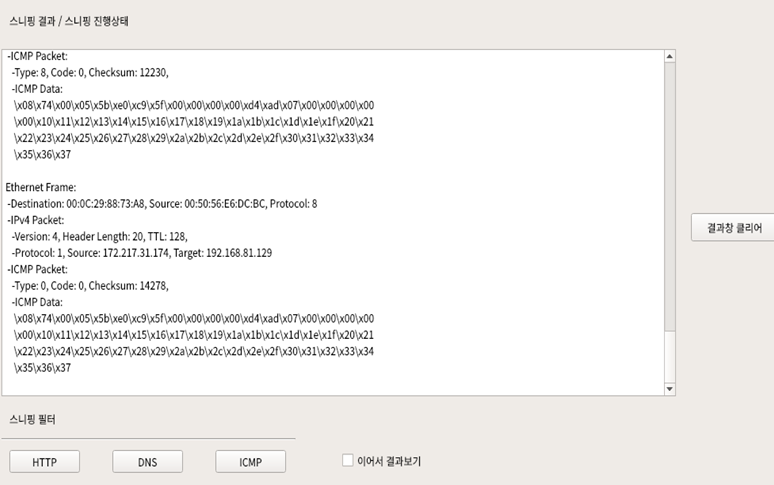 ##3. 한번에 하나의 프로토콜만 분석할수 있음. (출력이 안되면 한번더 버튼 누르고 실행)