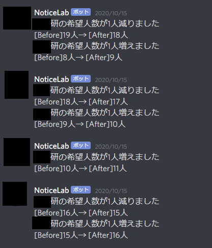 ボットは2分おきに研究室の希望人数を取得しに行き、増減があればdiscordに通知します。