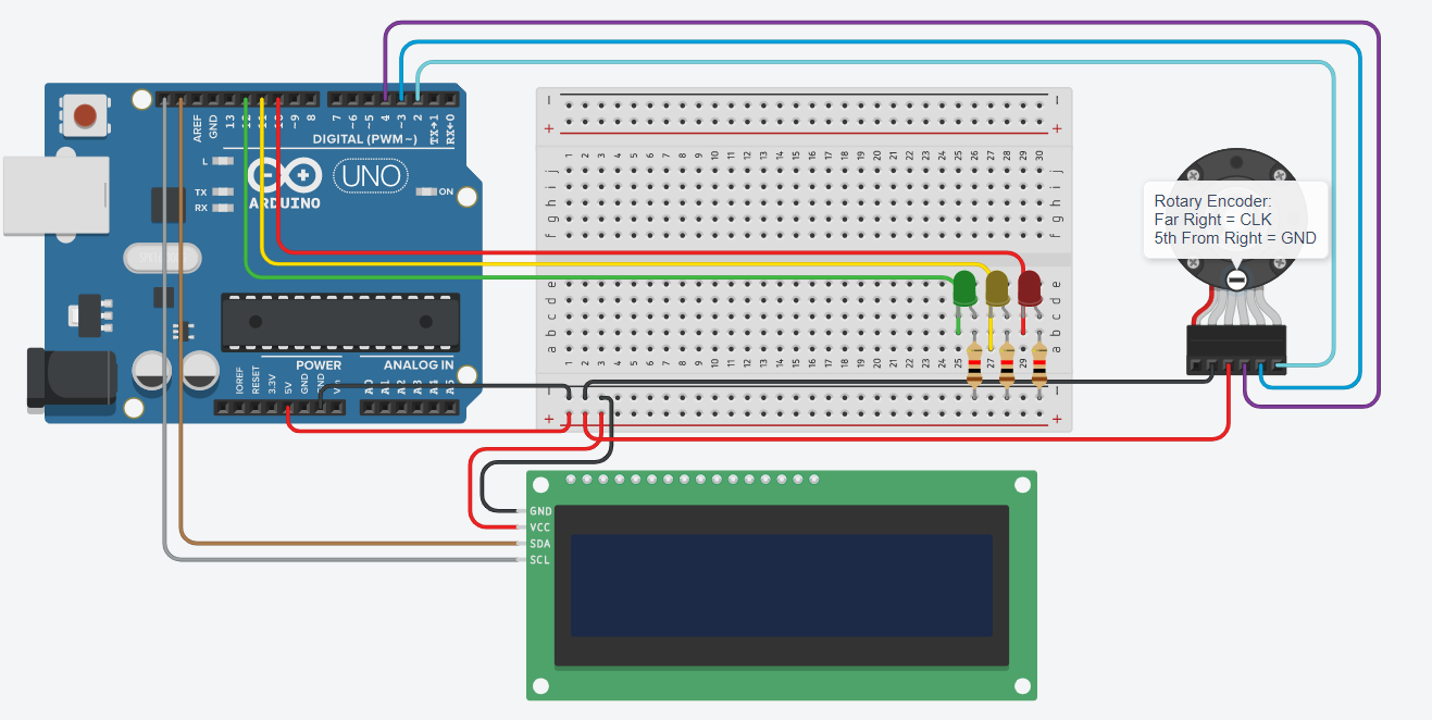 For this assignment we were told to use a rotary encoder which when integrated with an LCD screen and LED's act as a traffic light.