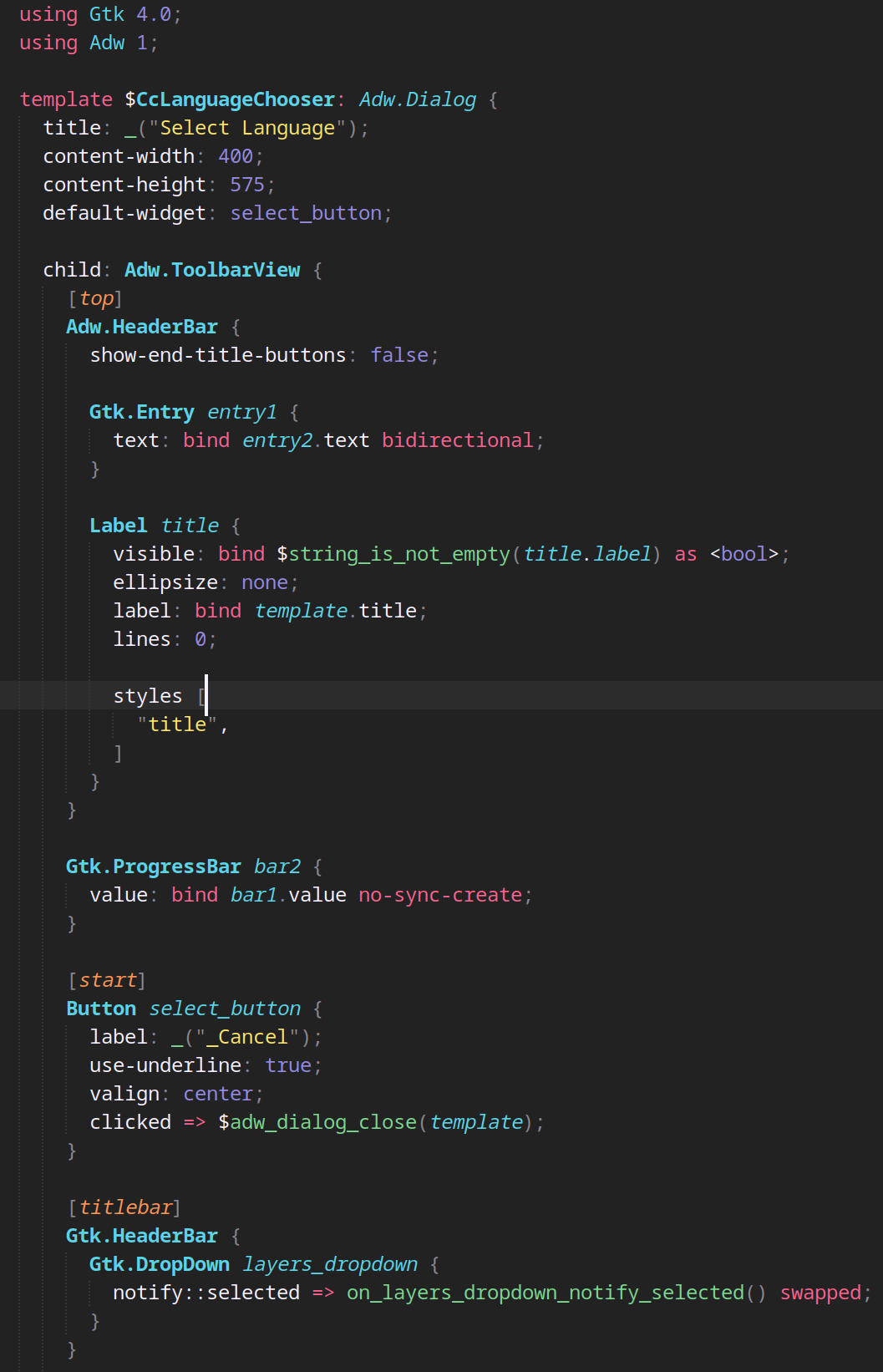 This is a Sublime Text plugin to provide syntax highlighting for Blueprint compiler files, which is a markup language and compiler for GTK 4 user interfaces.