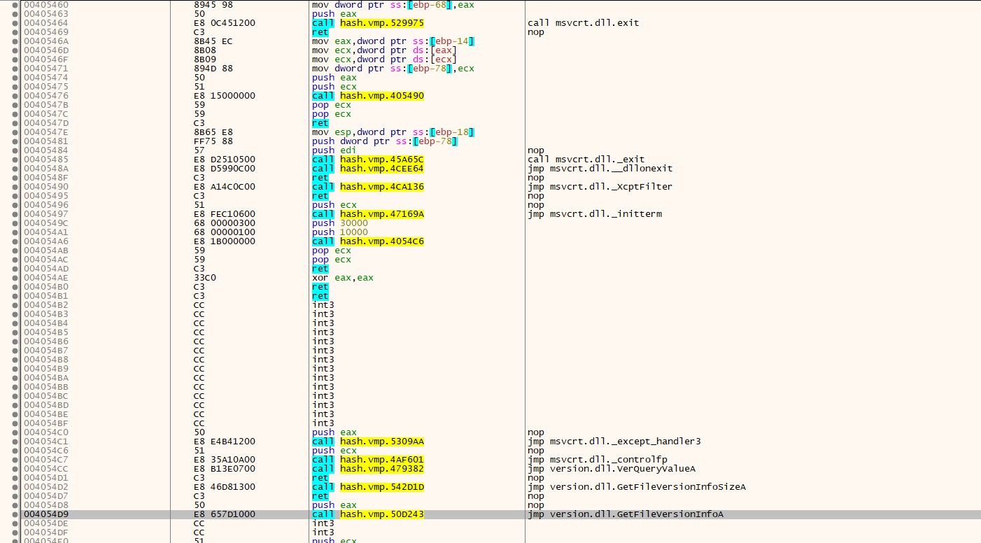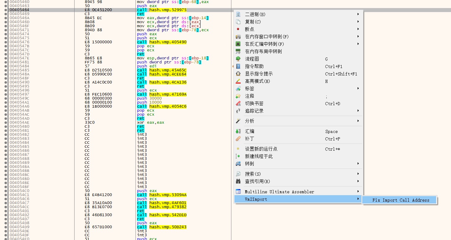 vm2iat dis.sel() call vmp0.xxxxxxxx, right click"Vm2Import"->"Fix Import Call Address"