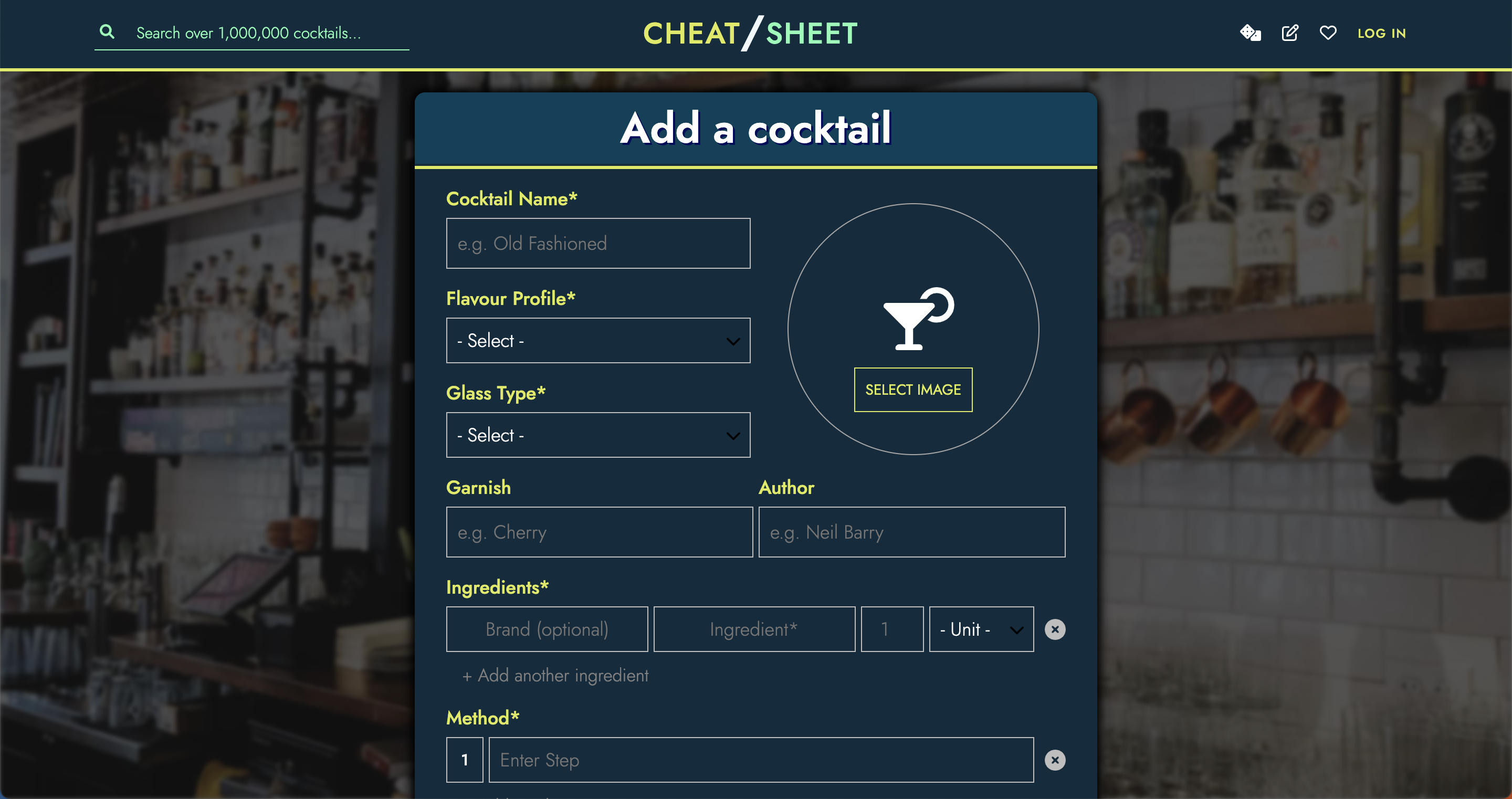 - Add, modify, delete cocktail recipe cards to/from online database