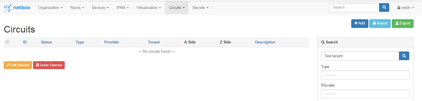 ### Environment * Python version: 3.6 * NetBox version: 2.5.12 ### Steps to Reproduce 1. Ensure circuit has tenant information against a circuit  2. search for that tenant name from homepage and fails in all-object search  3. Fails to find circuit in circuits page too   <!-- What did you expect to happen? --> ### Expected Behavior 1. Expected circuit to be discovered <!-- What happened instead? --> ### Observed Behavior 1. Circuit was not discovered