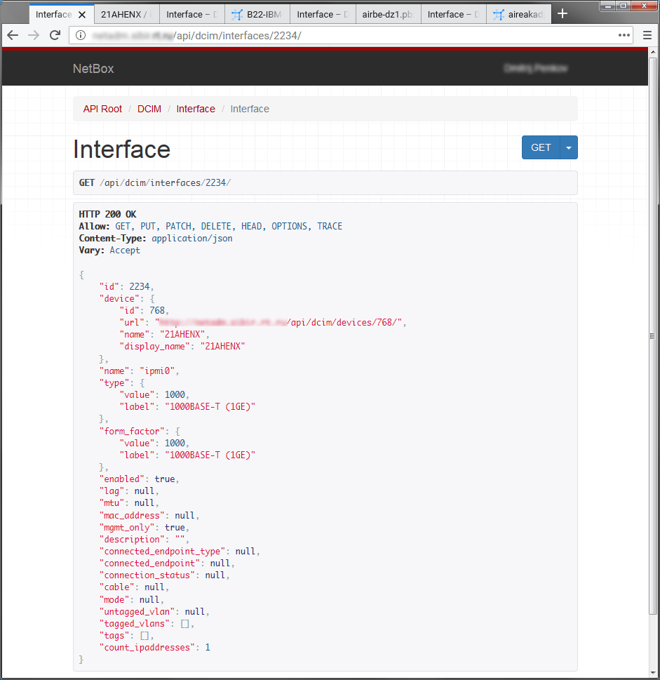 1-st and 2-nd requests to interfaces that are hanged on devices, all's ok. 3-d, 4-th interfaces are hanged on Virtual Machines, here I get "detail":"Not found."