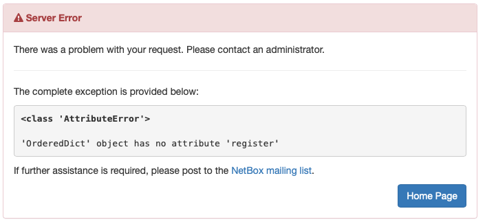 error_requirements.txt is the requirements after the fresh build whilst the issue is happening. If I downgrade it to djangorestframework==3.9.4 and restart netbox.service (sudo systemctl restart netbox.service) the problem goes away. See work_requirements.txt for what is changed after downgrading djangorestframework, it is only djangorestframework version. I can flip back and forward between the 2 versions of djangorestframework, it always works with 3.9.4 and does not work with 3.10.3.