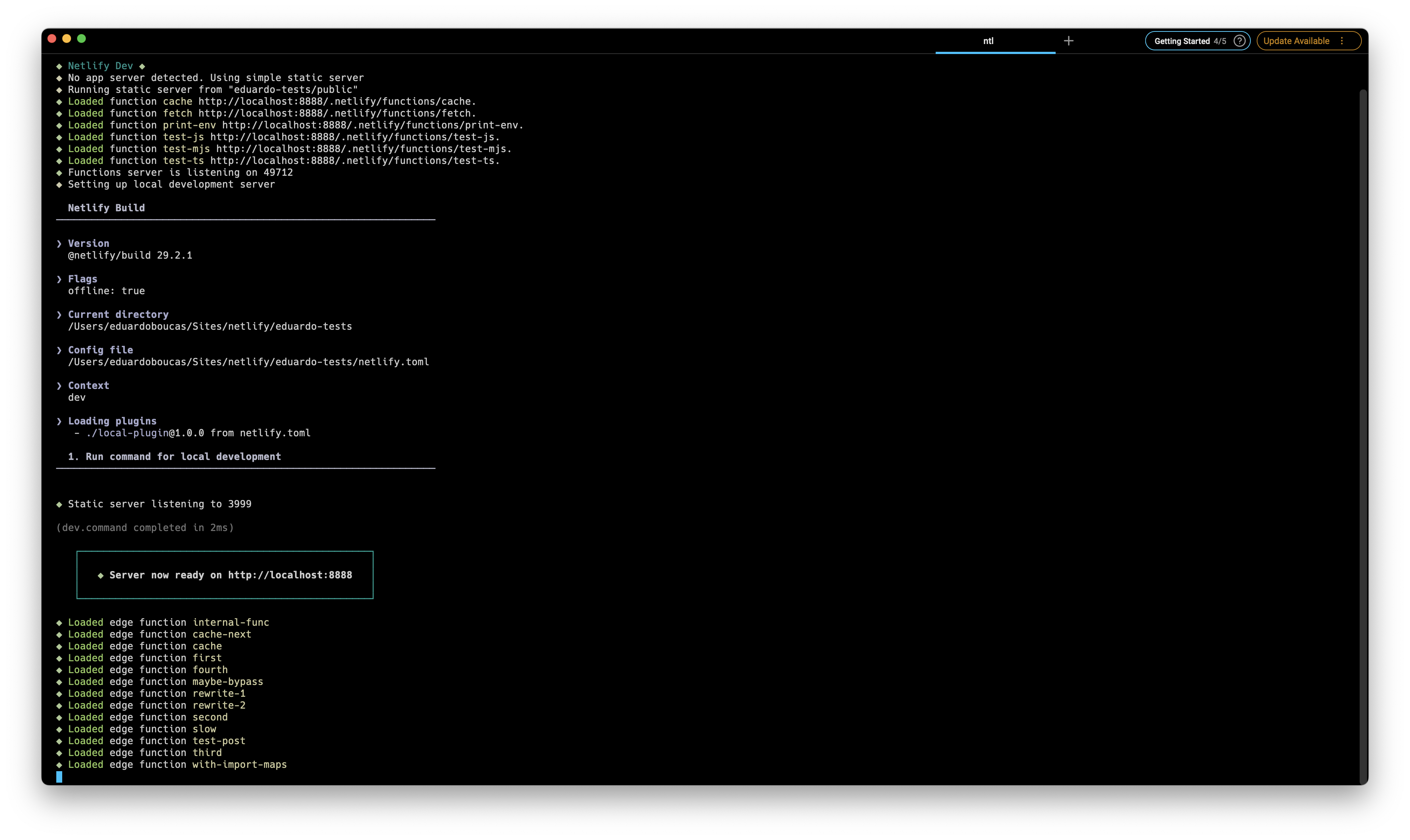 startDeventry point used by the CLI. Currently, the full Netlify Build information screen is printed onnetlify dev, which feels bloated and unnecessary. By making use of the new flag, we'll be able to reduce the output to the essential information.Before: