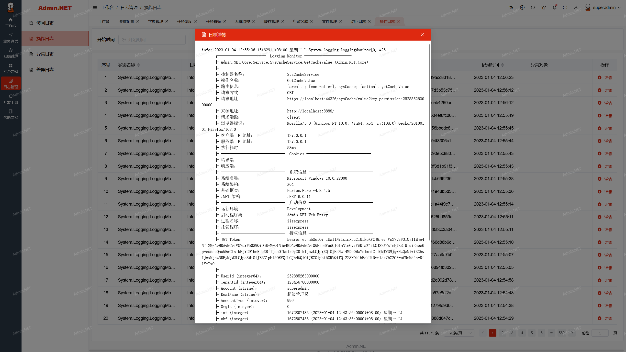 - 操作日志:系统正常操作日志记录和查询;系统异常信息日志记录和查询。