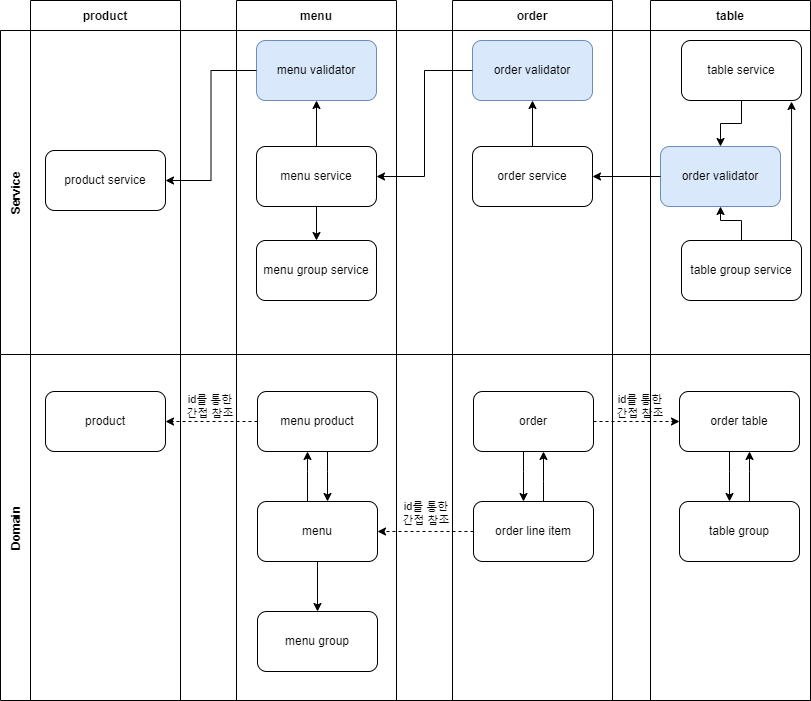 (presentation -> service -> domain 방향으로 의존하는 것 처럼 말이죠 :))