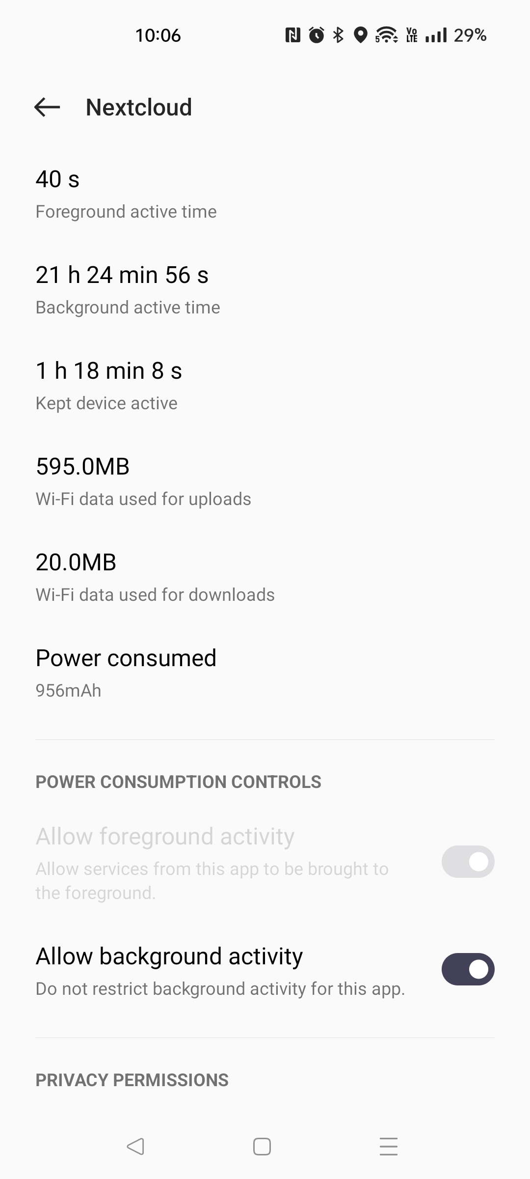 Have been having battery issues for about a week now, since the last update maybe. Every morning a notification that nextcloud is draining the battery and I should close it. screenshots of Phone, then this mornings battery use Not sure what I can provide from my server logs, but can have a rummage and post if you need me to look for anything |