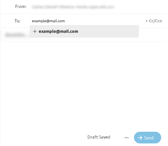 When you are redacting a new email, and write the destinatary's email, if you dont click on the + example@mail.com field (nor the Enter key either), the alias is not considered taken, and send button remains disabled (see screenshots below), and this makes it unconfortable