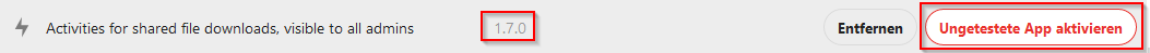 If an app, which is flagged as "untested", is updated with a tested and valid app version, the "Enable untested app" button is still displayed. It only vanishes if the list of apps is refreshed.