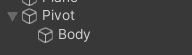 "Body"는 캐릭터의 머리, 팔, 다리, 몸통을 모두 포함한 객체입니다. "Pivot"은 빈 게임 오브젝트입니다.