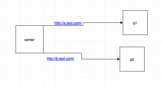 { "listeners": { "*:8008": { "pass": "routes" } }, "routes": [ { "match": { "host": "a.test.com" }, "action": { "proxy": "http://q2:8001" } }, { "match": { "host": "b.test.com" }, "action": { "proxy": "http://q1:8002" } } ] }