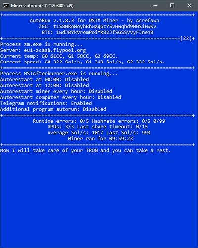 If i'm not ask to much lol there is a possibility to included/swipe Equihash miners to DSTM miner, amazing results, regardless the problem with "thread exited with code" from EWBF, after the new driver started get a lot of these kind of erros doesn't matter OC speed... stuck in 0 sol/s .