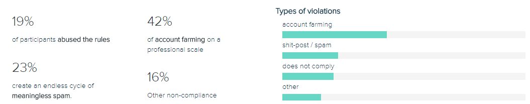There are many bounty campaign, whose activities can not be analyzed in a reasonable time. This situation has become a kind of stimulus for the development and use of the account farming. The problem is that most companies are too busy trying to focus on their products and business problems in order to spend time on the community.