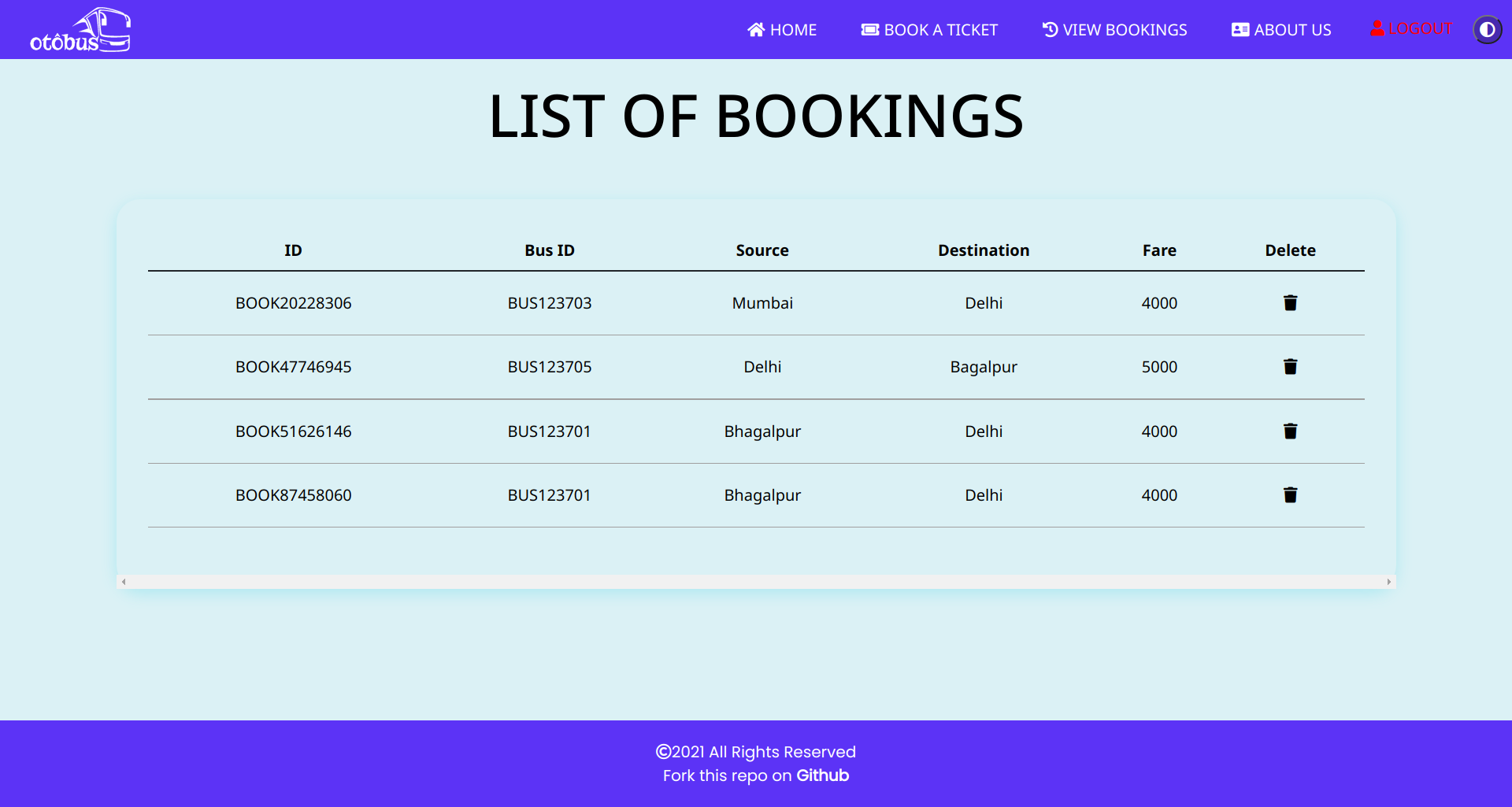 - Delete a Booking