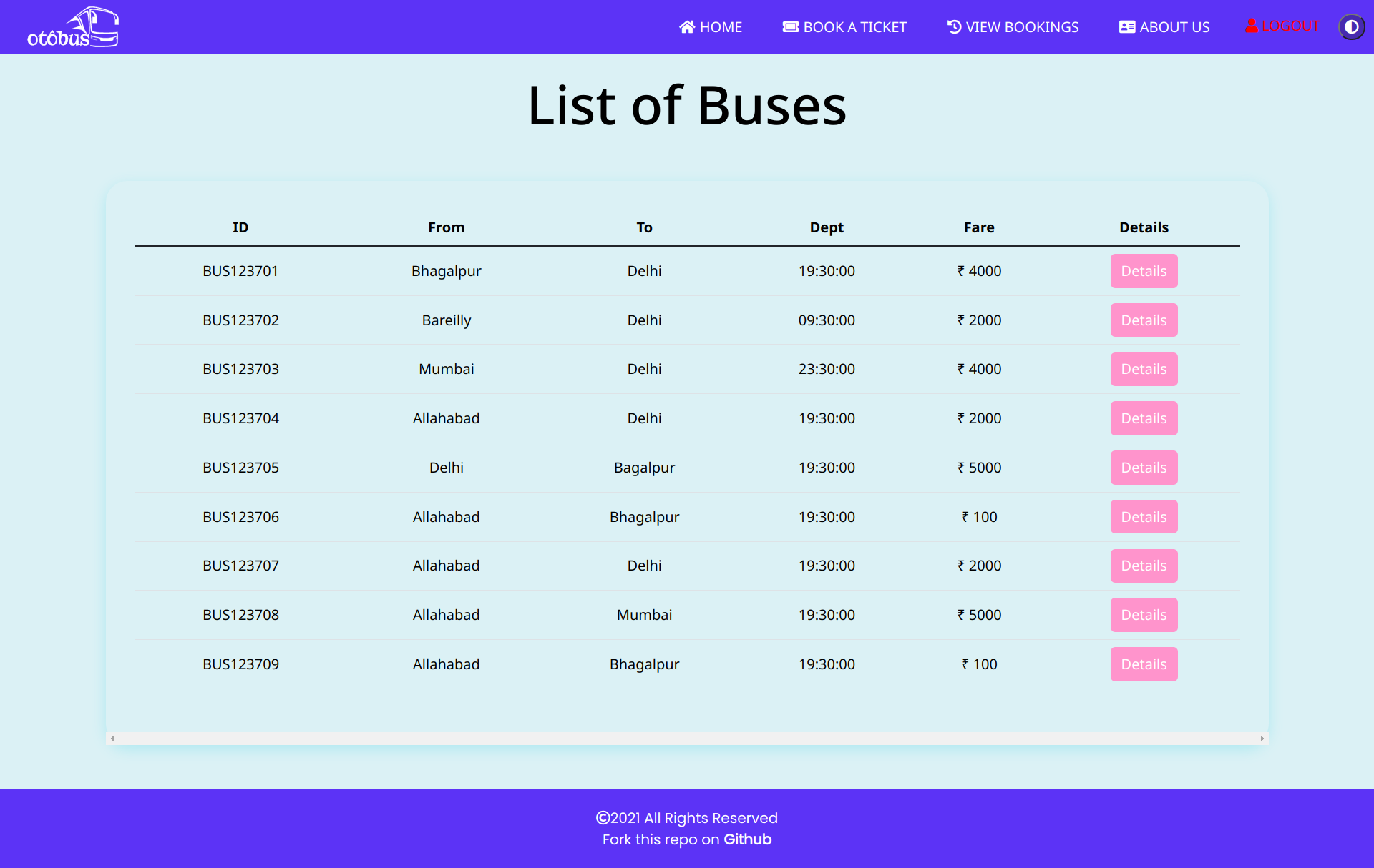 - Displaying the details of individual Buses