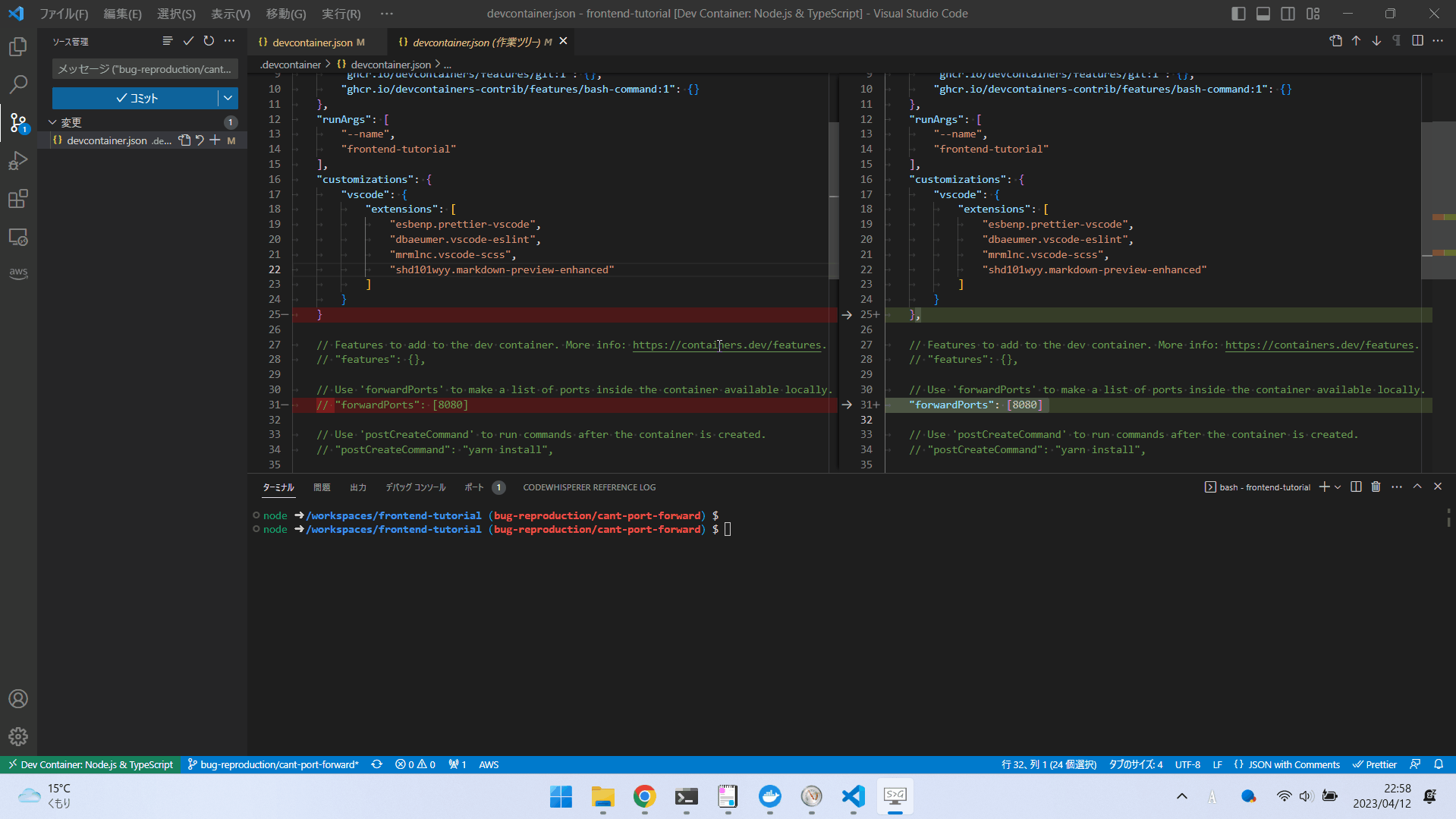 node ➜ /workspaces/frontend-tutorial (bug-reproduction/cant-port-forward) $
