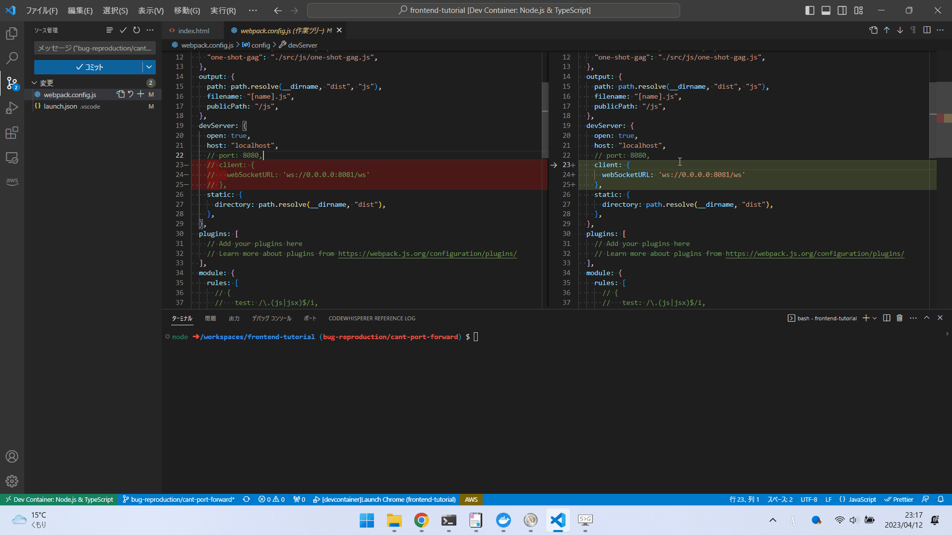 1,vscode devcontainer で webpack-dev-server 実行時に、コンテナ側とホスト側でポートがズレる