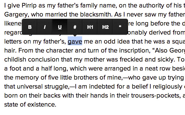 buttons: ['bold', 'italic', 'underline', 'anchor', 'h2', 'h3', 'quote'],