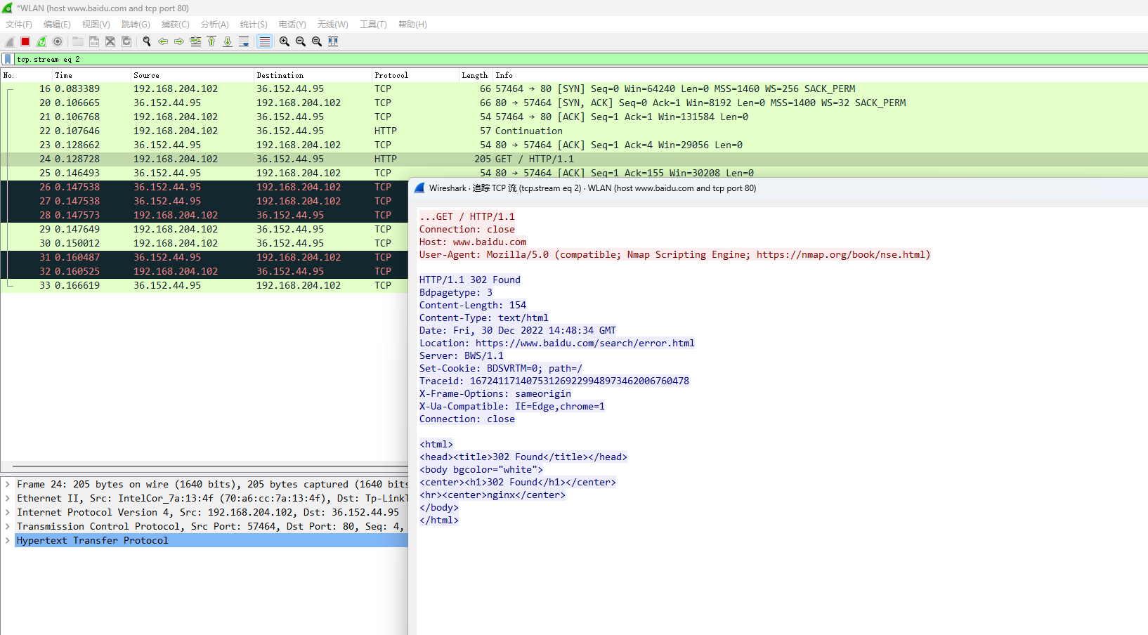 nmap -n -Pn -v --proxy socks4://192.168.175.131:10808 -dd www.baidu.com -p80 -sV