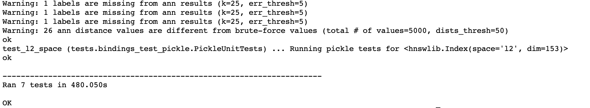 print(f"Making 25 copies of index took {(t2-t1)}s")I got the following timing results when running the snippet locally: > python3 tests/test_ann.py file