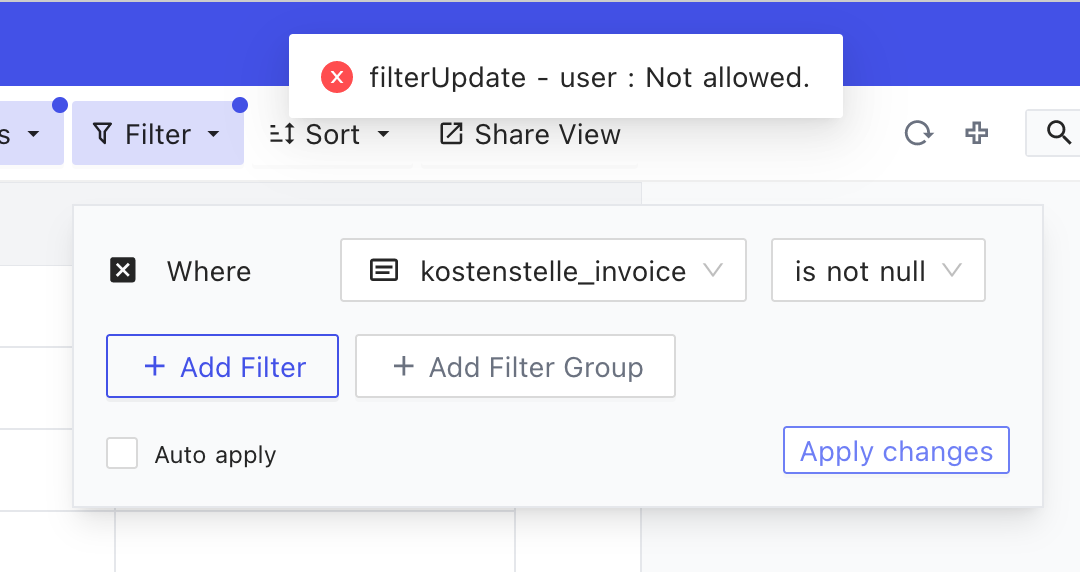 The error is happening when filterParentId is sent in request parameter. In backend projectId is not searched with filter parent and noco backend consider all these requests as unauthorized as authorization is project based.