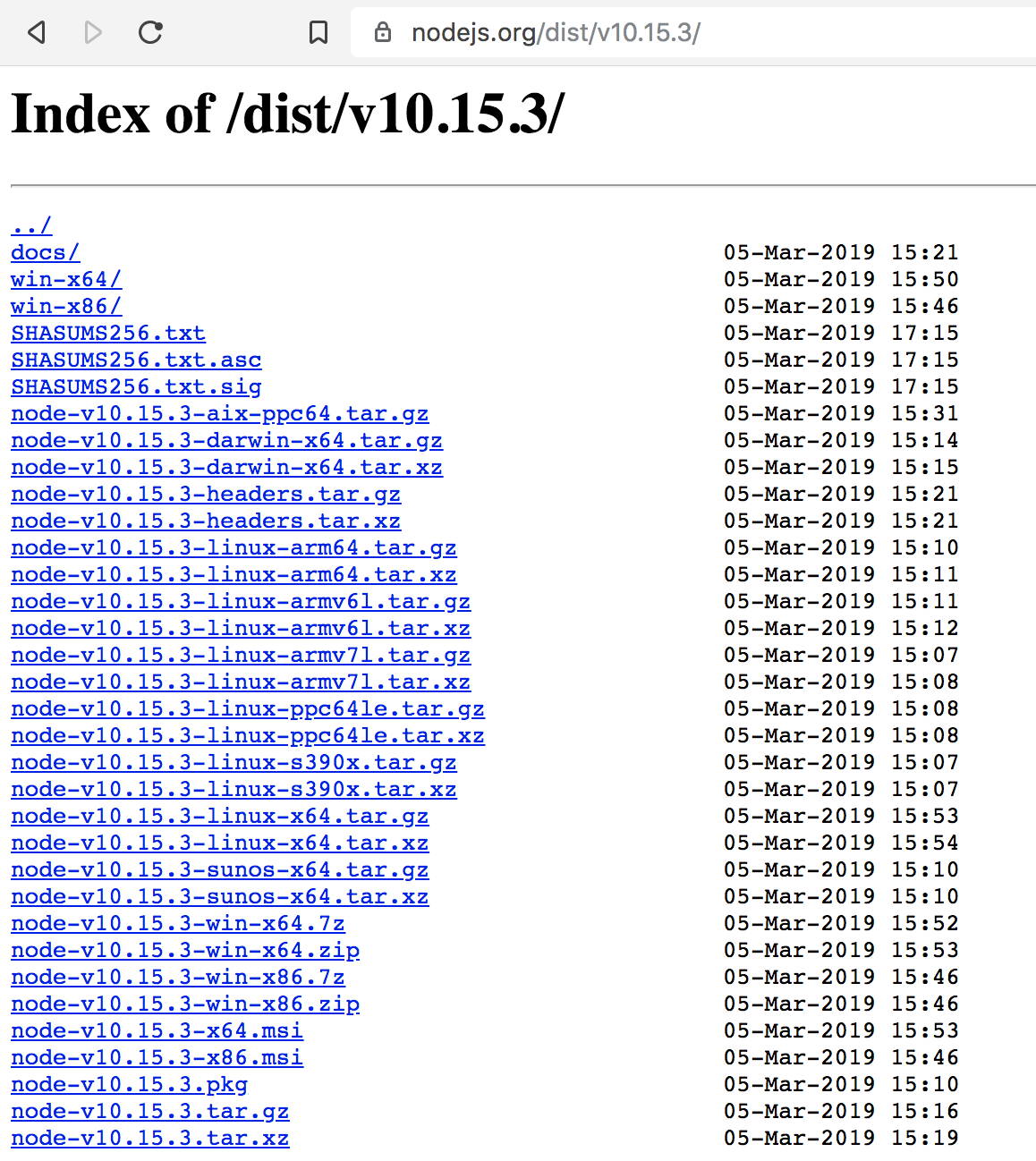 I guessed that it may be node-v10.15.3-darwin-x64.tar.gz? Is this right? I downloaded it and uncompressed it and it shows a list of files.