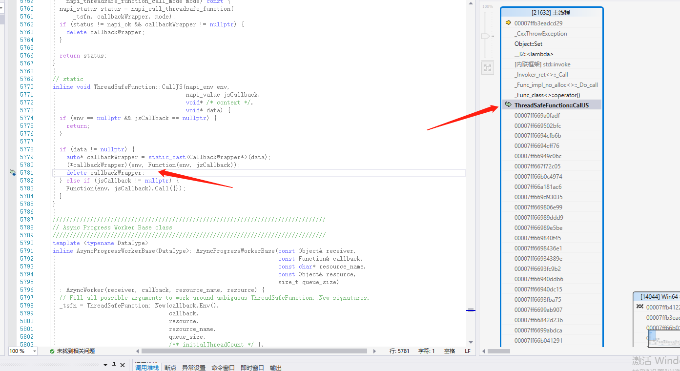 Execute in a thread-safe function auto jscallback = [=](Napi::Env env, Napi::Function jsCallback) { Napi::Object videoFrame = Napi::Object::New(env); videoFrame .Set("width", Napi::Number::New(env, 1920)); //crash happens }