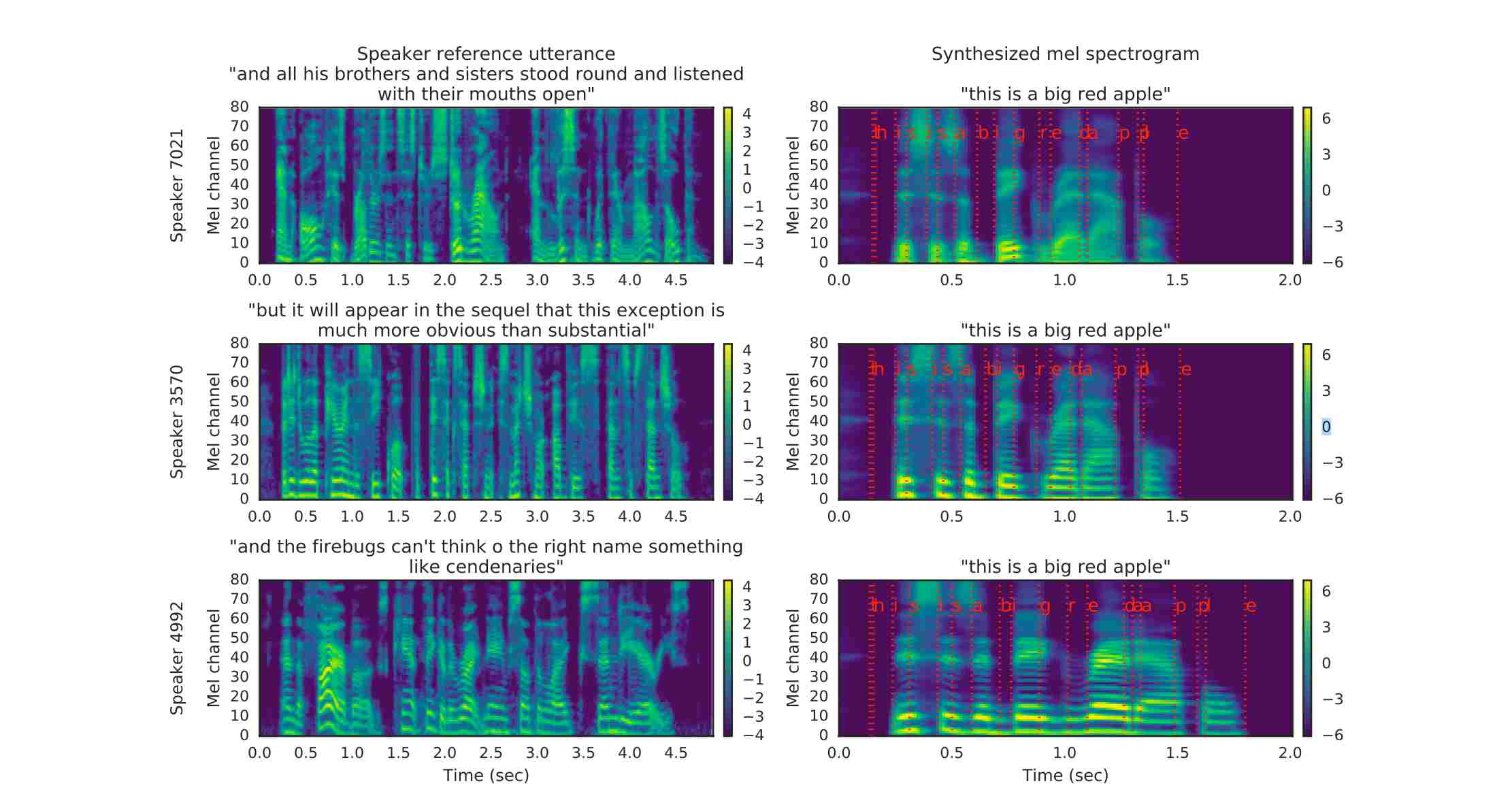 基于目标音色的梅尔频谱图 - tacotron2_sdk 模型生成文本基于目标音色的梅尔频谱图。 |