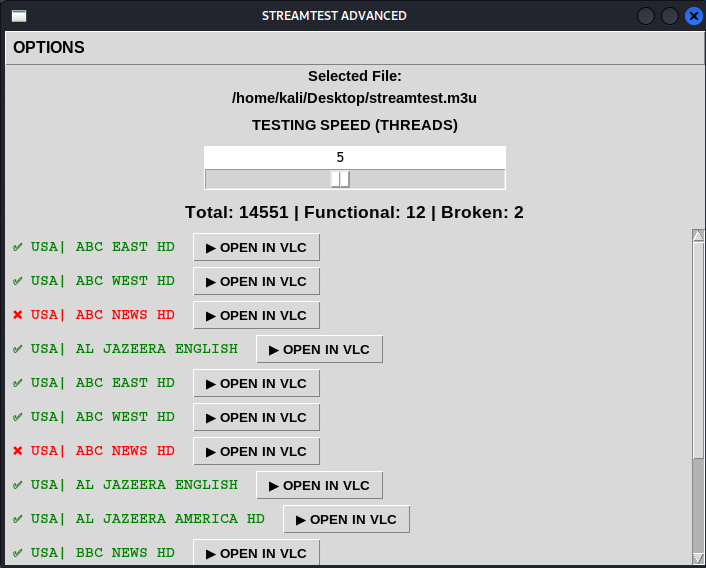 ▶️ Ability to play any stream directly from the GUI (both working and broken)- 💾 Automatic saving of working and non-working streams to