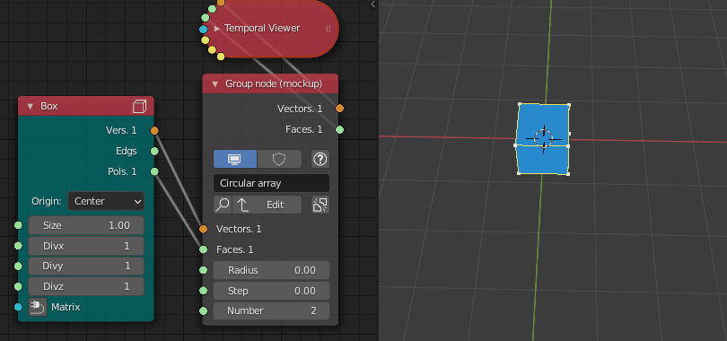 This shouldn't be a problem when creating node groups, as the link class contains from/to_socket as well as from/to_node data members. You can make the node interfaces in such a way that they link to the node rather than the sockets created in the "node group" node. It would look like a bypass where the output sockets would serve no purpose but to call EDIT: Just realised that it might look confusing at first. I'll try to make a small demo node to visualize this. Also, I have almost no experience in developing Sverchok nodes or know how they function internally, so it is possible that what I propose wouldn't work. |