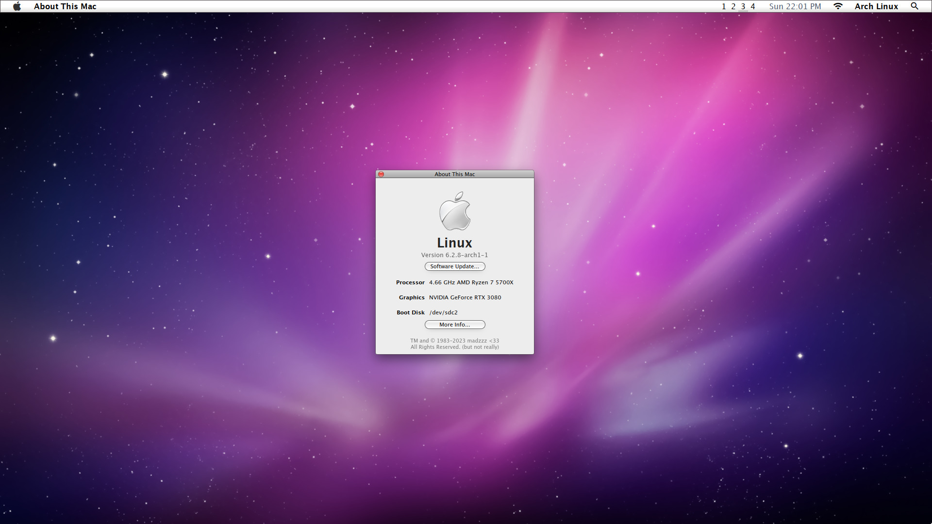 A clone of Snow Leopard's About This Mac dialogue written in Electron.