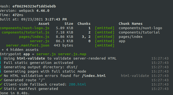 Run dev server and load the home page or run yarn generate. No warning is logged. If you change one of the rules to throw an error, the error is logged alongside the warnings.