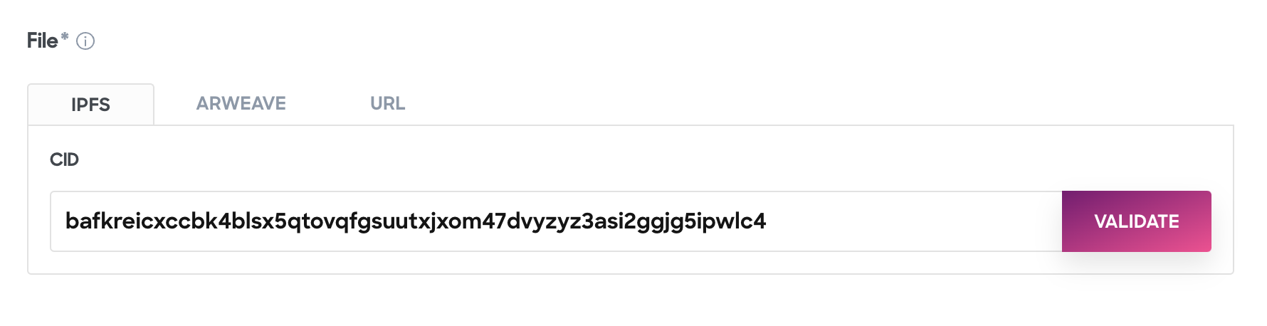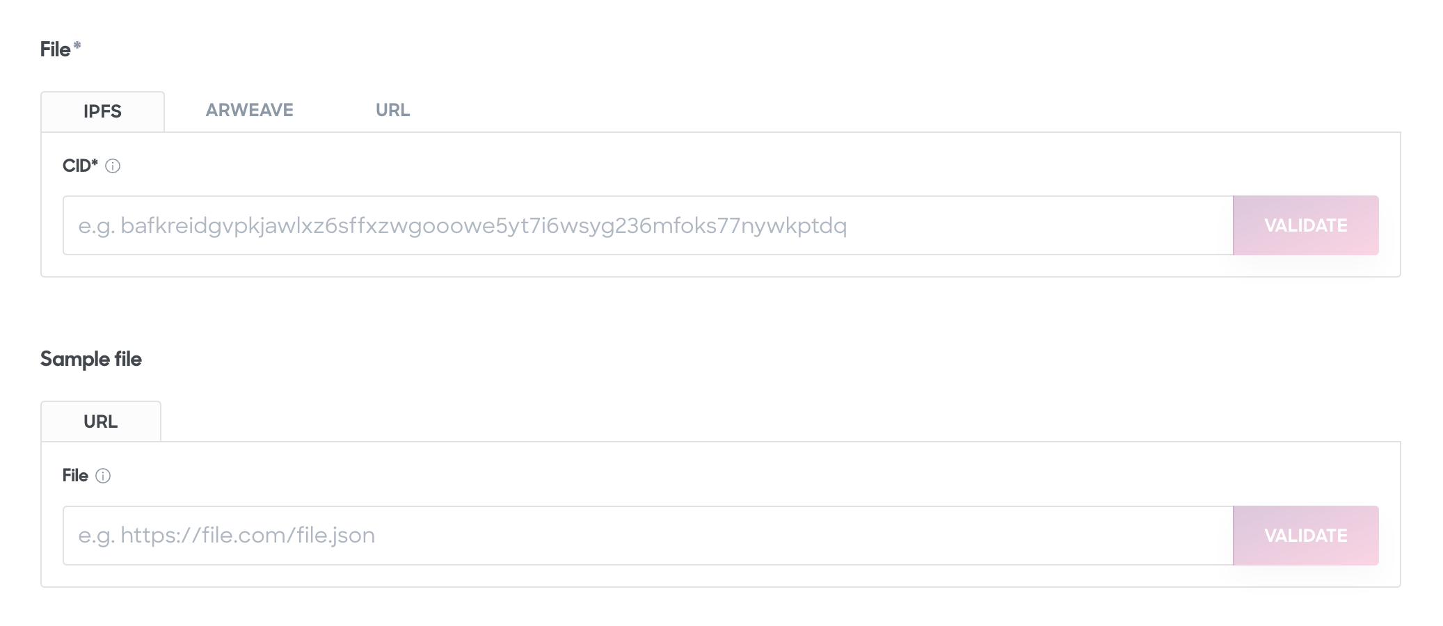 Why is it only possible to use a URL for the sample file? People may also want to use IPFS/ Arweave for that |