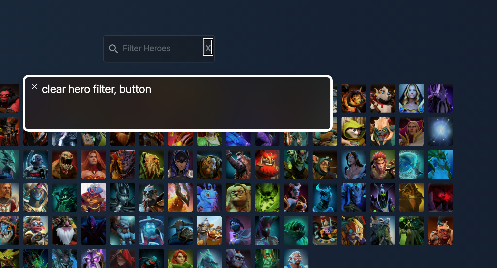 This pull request adds aria labels to these elements on the Combo page: Hero Filter, Reset Btn, team select buttons. This is needed because screen reader users currently have no context around what these elements do. As seen in attached screenshots, screen readers will read out ambiguous labels. With these fixes, screen readers provide more understandable context around what each element actually does.