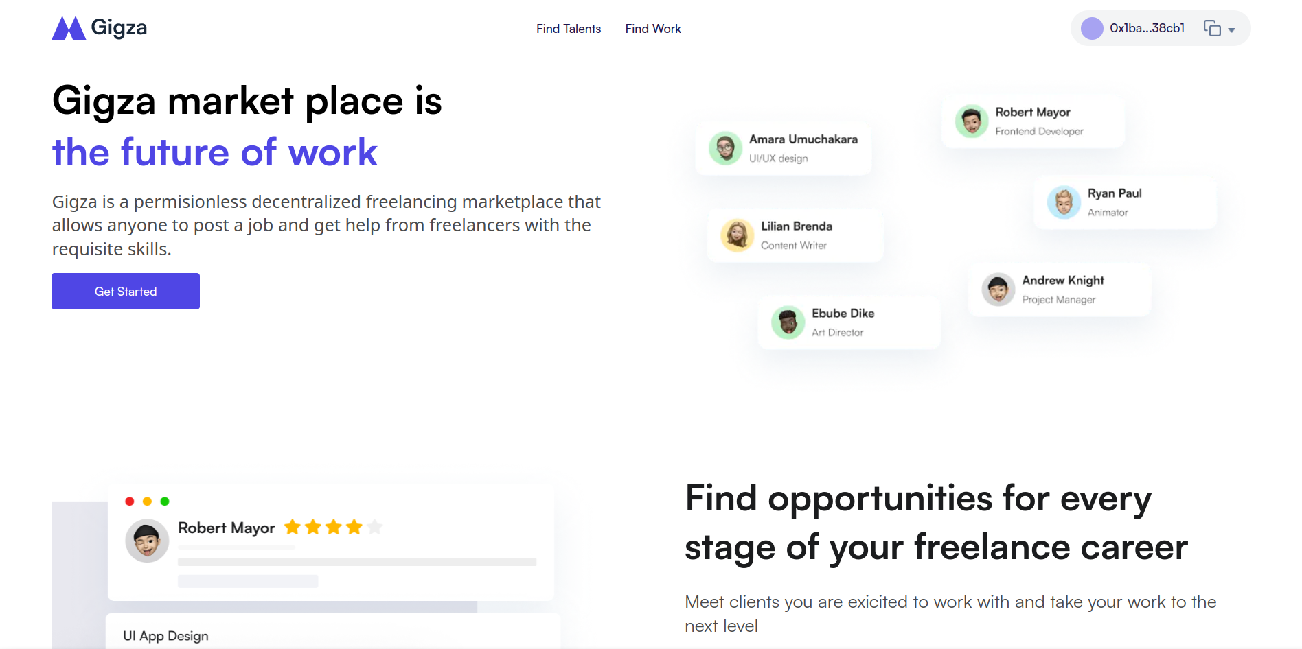 Gigza is a permissionless decentralized freelancing marketplace that allows anyone to post a job and get help from freelancers with the requisite skills. Freelancers can also earn a living regardless of where they may be situated and their access to bank services by bidding and executing client jobs. The smart contract acts as the escrow account replacing the need for an intermediary.