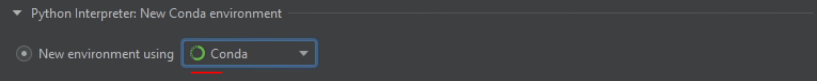 Then, click on 'New Environment Using' and choose conda from the drop down.