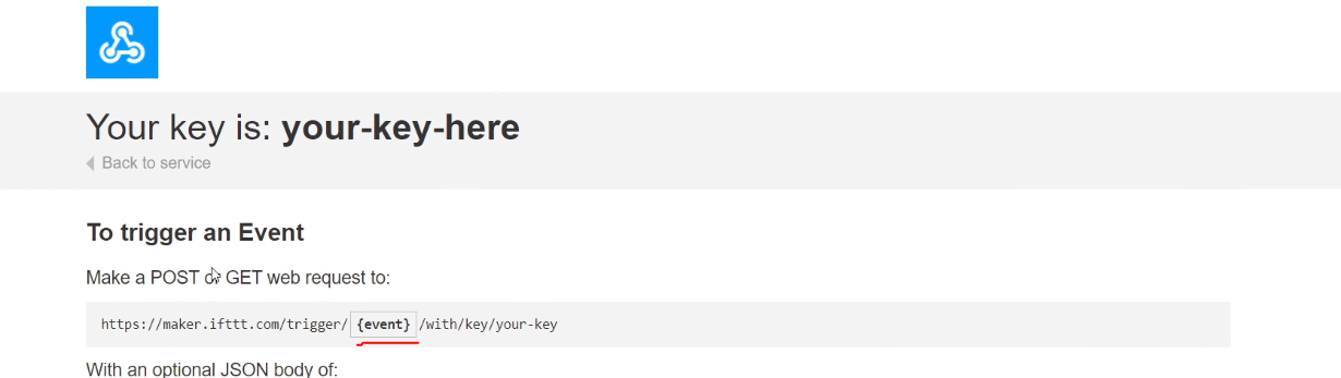 Then, click on Documentation. At the top link, change {event} to the name of the event you set up. Then, you can copy the link!