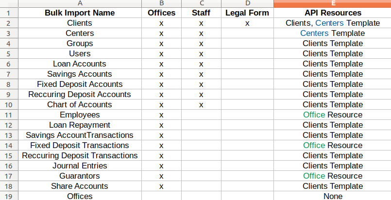 Name, Entity Type, URL Suffix, Number of Form Fields (Offices,Staff, Legal Form, None).