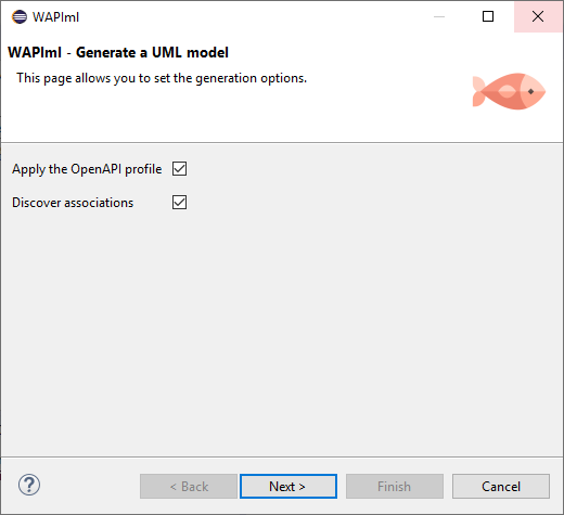 - Check Apply the OpenAPI profile if you want to enrich your UML model with OpenAPI stereotypes (this mandatory if you want to generate an OpenAPI definition later) and check Discover associations if you want the process to discover implicit associations by analyzing schema properties (note: this only concerns the association that are not explicitly defined. Explicit associations will be included in the model either way).