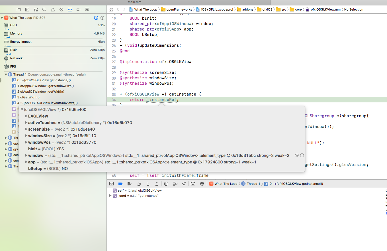 > the instance in [ofxiOSGLKView getInstance] is actually a ofxiOSEAGLView,