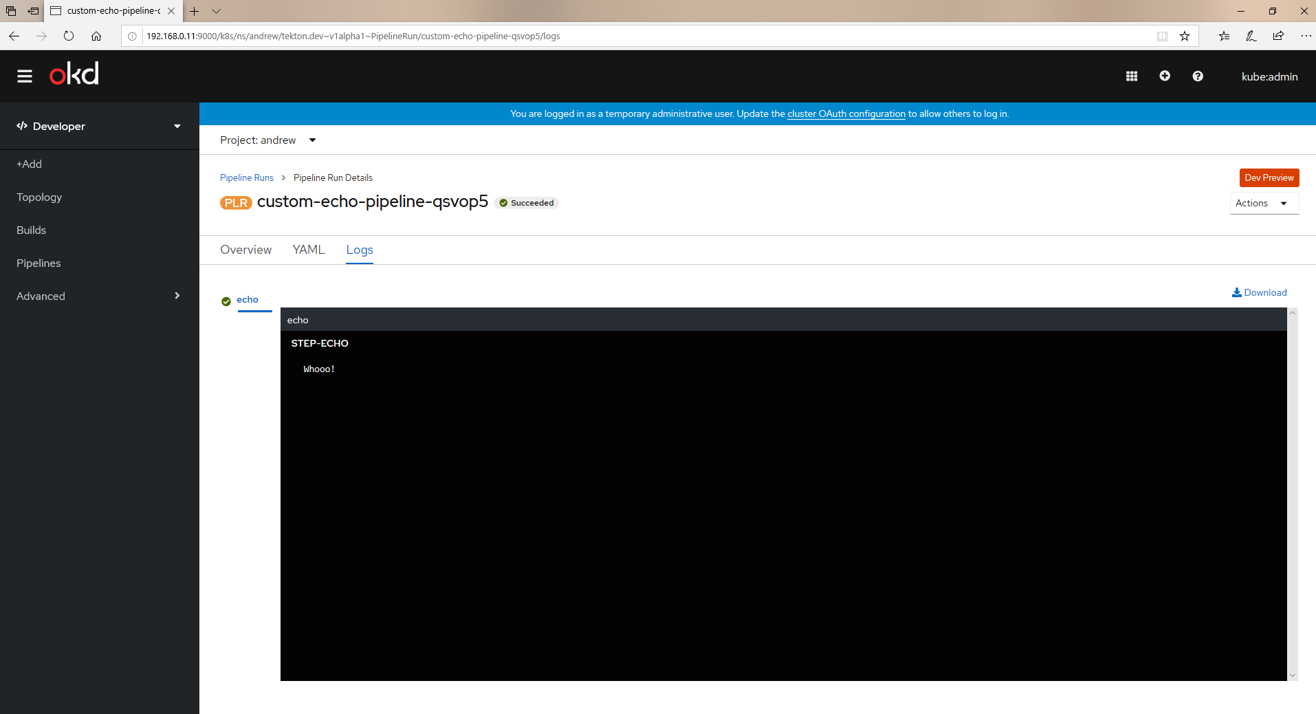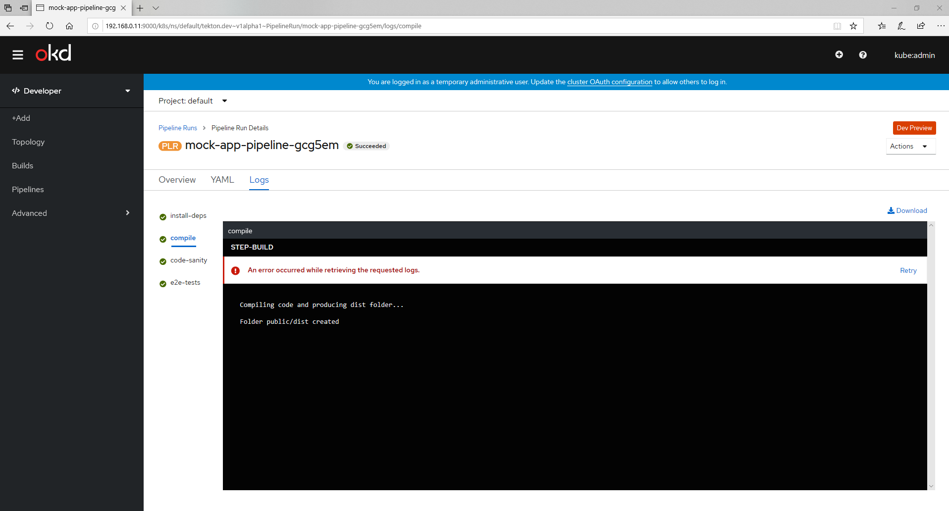 Bug 1777980: Edge Hack - Fix Pipeline Logs #3612