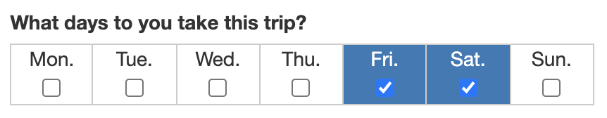 The main design change resulting from the Formik conversion is the component change for selecting the monitored trip days.