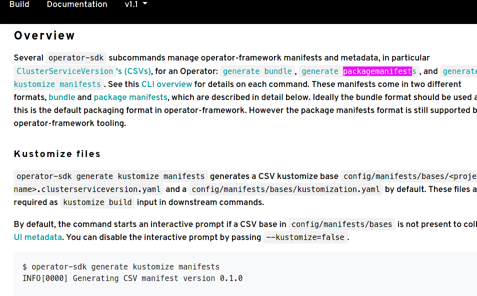 I was taking to the overview of the page which is confusing. https://sdk.operatorframework.io/docs/olm-integration/generation#overview