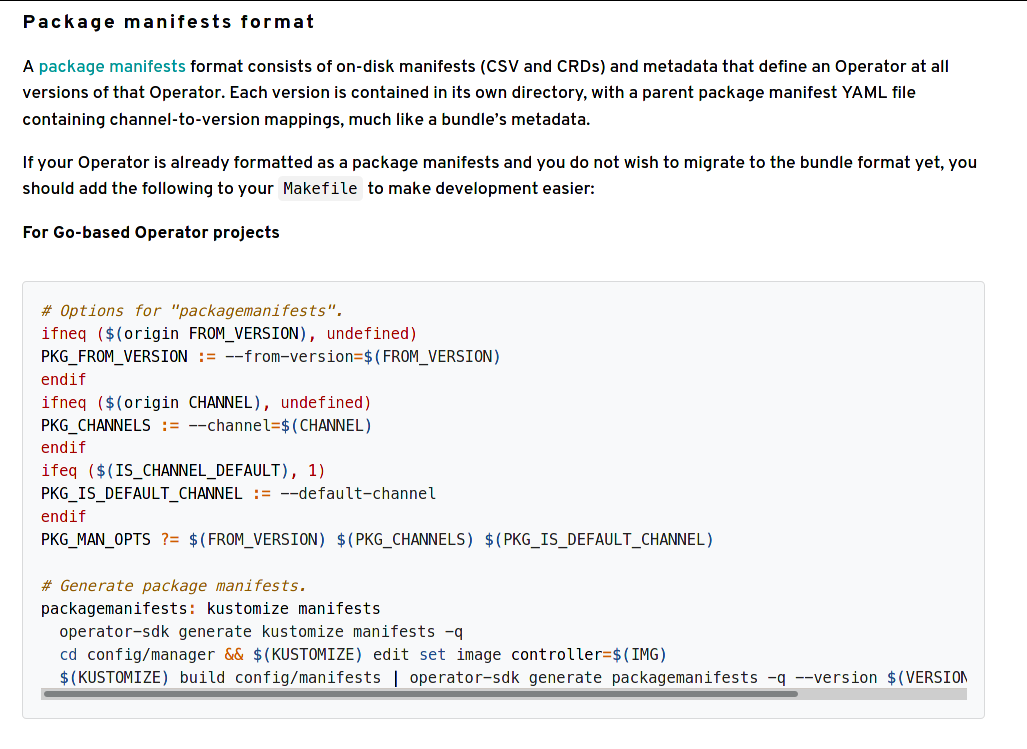 - Visit https://sdk.operatorframework.io/docs/olm-integration/quickstart-package-manifests/