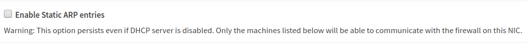Warning: This option persists even if DHCP server is disabled. Only the machines listed below will be able to communicate with the firewall on this NIC.